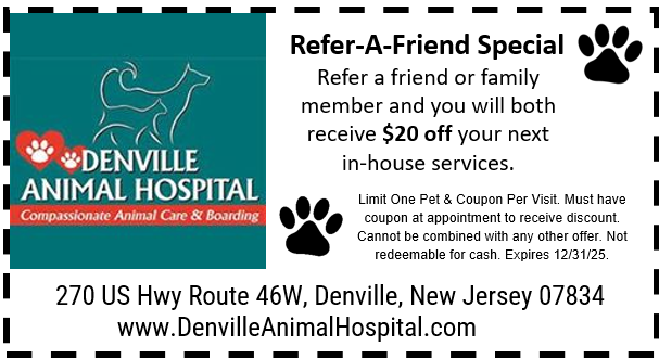 Denville Animal Hospital is a trusted and affordable pet care provider that understands the importance of your pet’s health and well-being. We service all the surrounding areas including Rockaway, Dover, Mountain Lakes, and Parsippany. Every pet deserves the best veterinary care, and we are committed to ensuring they can see us. We know veterinary expenses can sometimes be a burden, so we offer special offers to make pet care more affordable.